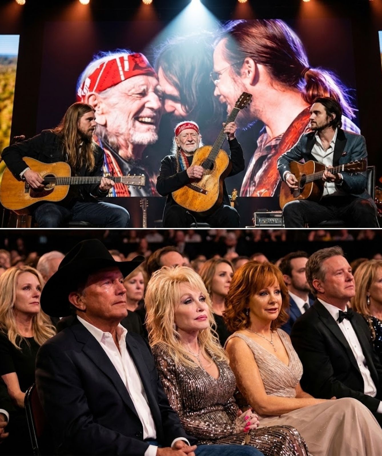 For decades, Willie Nelson has stood as a pillar of American songwriting — a voice that defined eras, crossed generations, and shaped the very sound of country music. But on this night, that legacy did not stand alone. It stood surrounded.