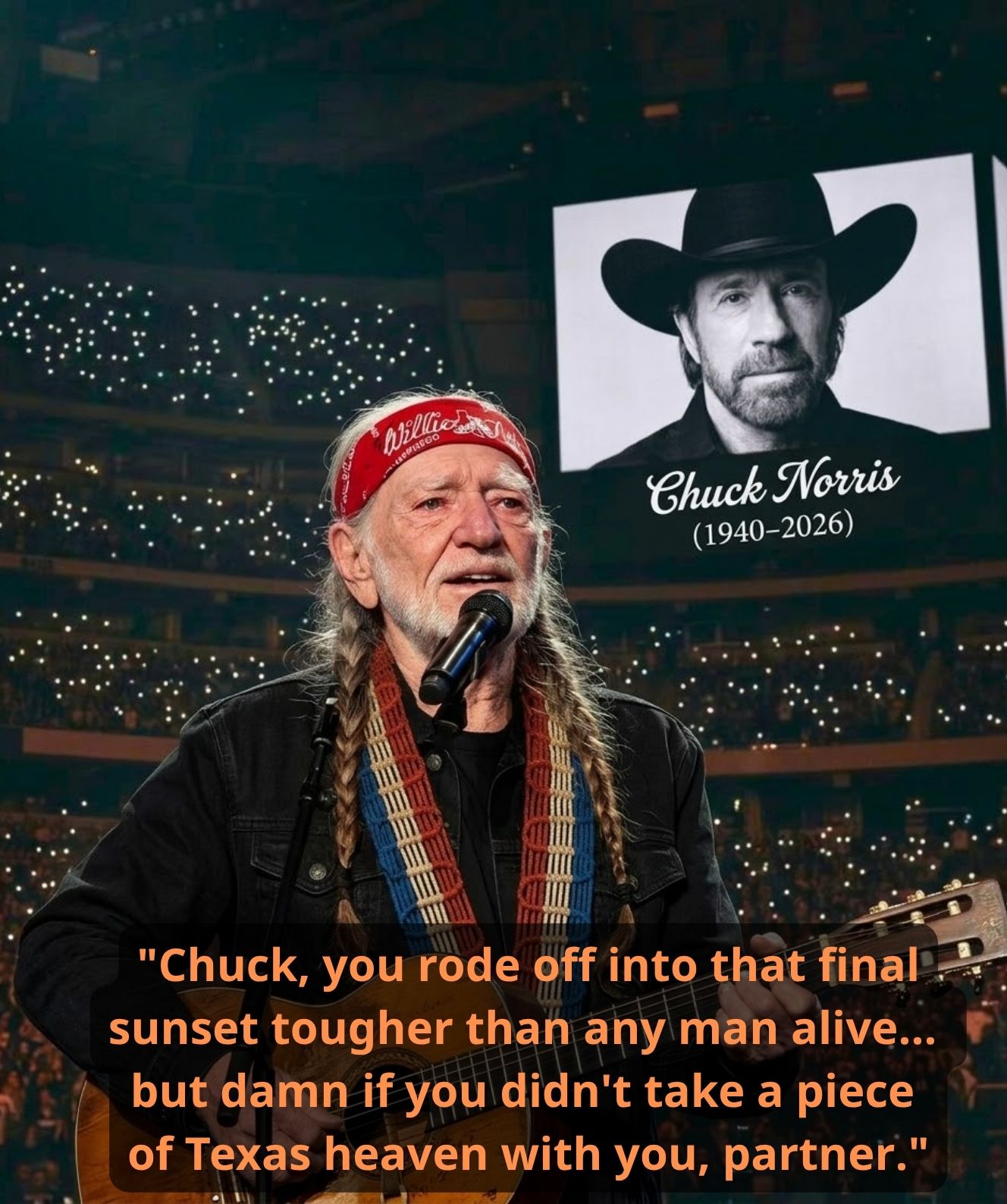 A SILENCE OVER 20,000 VOICES — When Willie Nelson Turned A Stadium Into Something Sacred After Chuck Norris’s Farewell