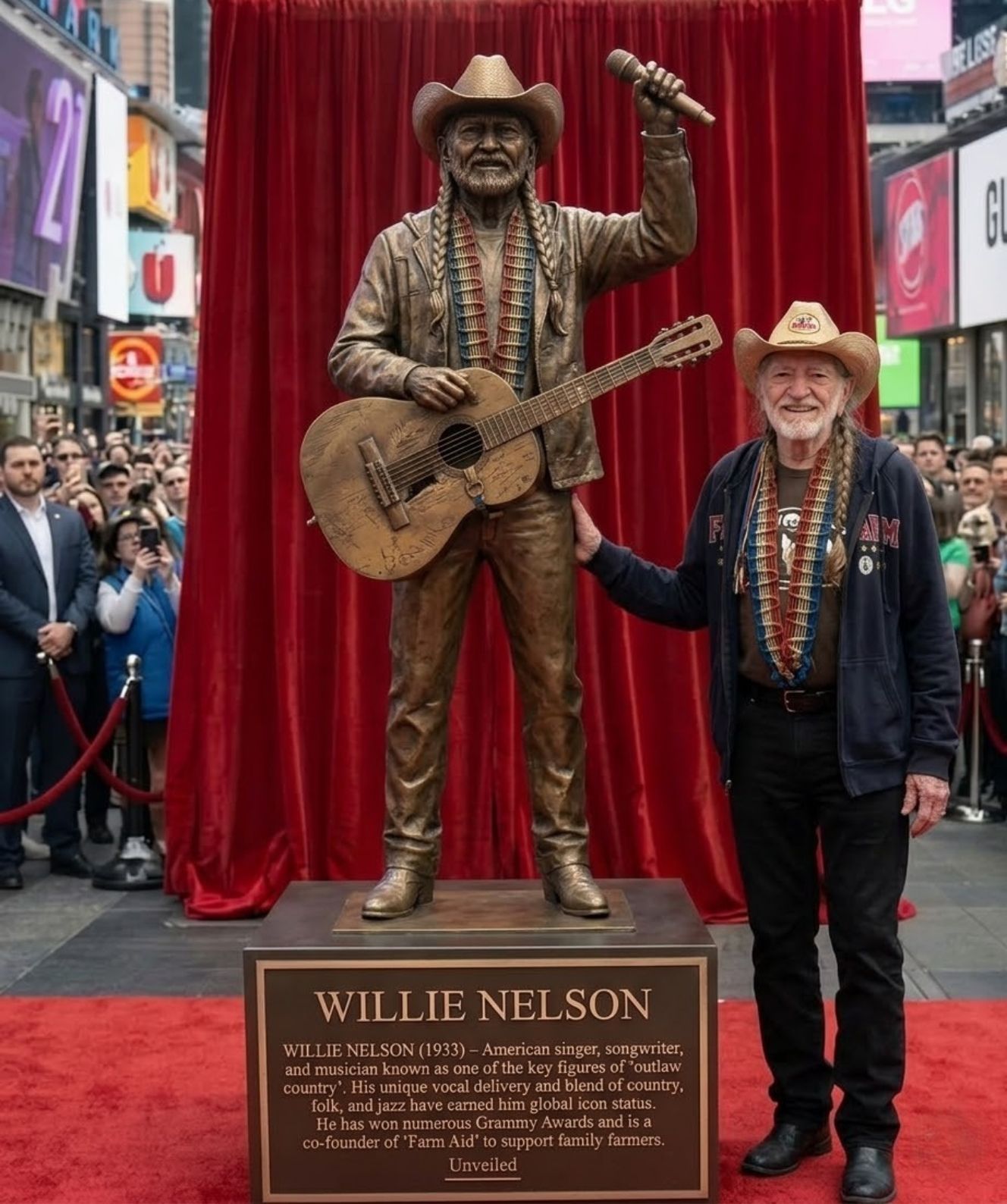 For the first time in its storied legacy, the Hollywood Walk of Fame has welcomed something more than a name beneath the pavement. It has welcomed a figure — a full-body statue honoring none other than Willie Nelson, a man whose voice has carried across generations and whose life has become inseparable from the very soul of American music.