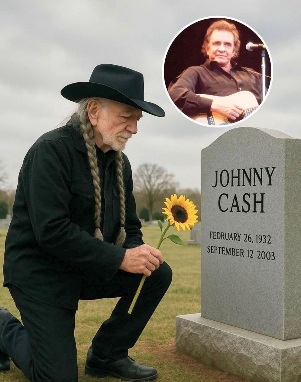 For years, people believed the image was simple: Willie Nelson, alone at the grave of his lifelong friend Johnny Cash, kneeling in quiet remembrance. A tender moment, yes — but nothing more than grief expressed by a man who had walked miles of music and memory beside the Man in Black.