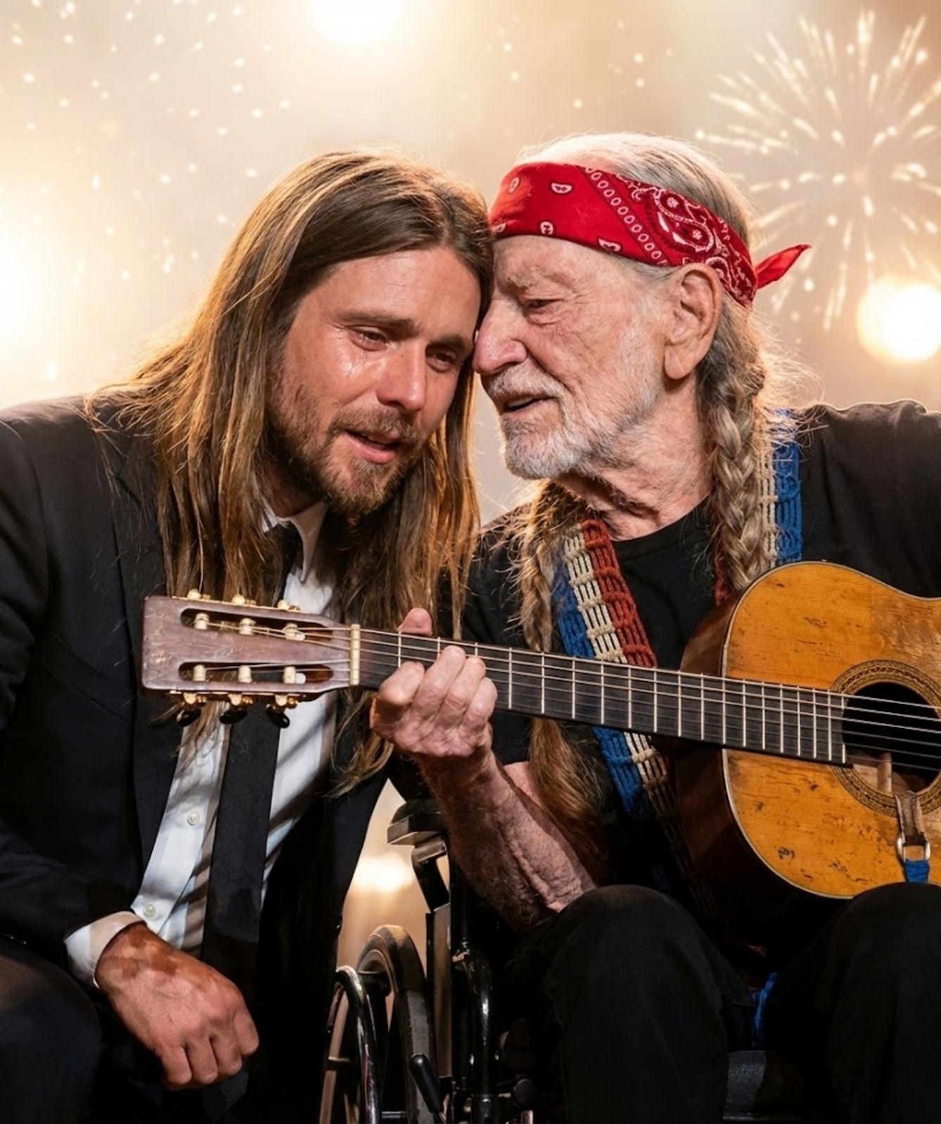 As fireworks cracked open the sky and 2026 arrived in a blaze of color, something far more powerful than spectacle unfolded onstage. Beneath the glow of lights and the hush that followed the final countdown, Willie Nelson stepped forward with his son, Lukas Nelson. What followed was not announced. It was not planned as a centerpiece. It simply happened—and thousands stood silent, knowing they were inside a moment that would not come again.