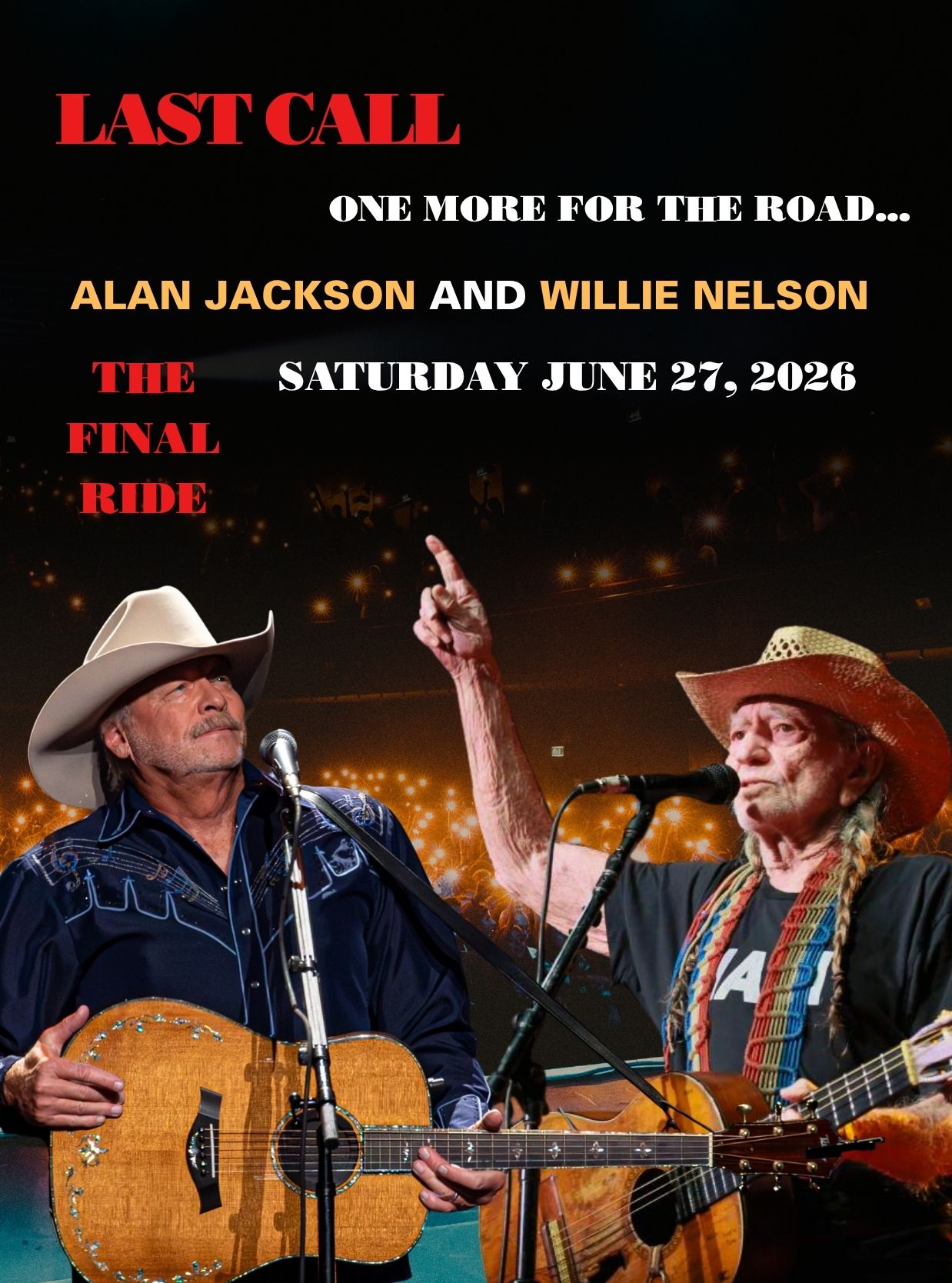 Country music history will reach its most emotional crescendo on June 27, 2026, when two American legends — Alan Jackson and Willie Nelson — share the stage one final time. The setting could not be more fitting: Nissan Stadium in Nashville, Tennessee, the city that gave birth to their dreams and carried their songs into eternity.