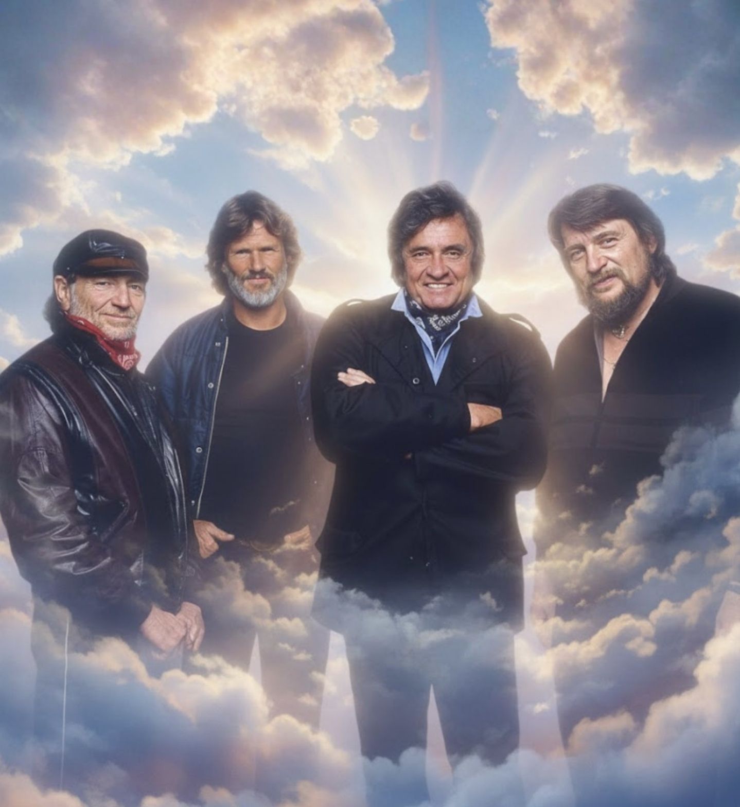 Listeners describe a sensation of time folding, as though Cash, Waylon, Willie, and Kris are gathered once more, boots planted, heads bowed slightly, sharing a moment outside the reach of ordinary life. It feels like they are reaching back — not from memory, but from somewhere gentler, somewhere eternal.