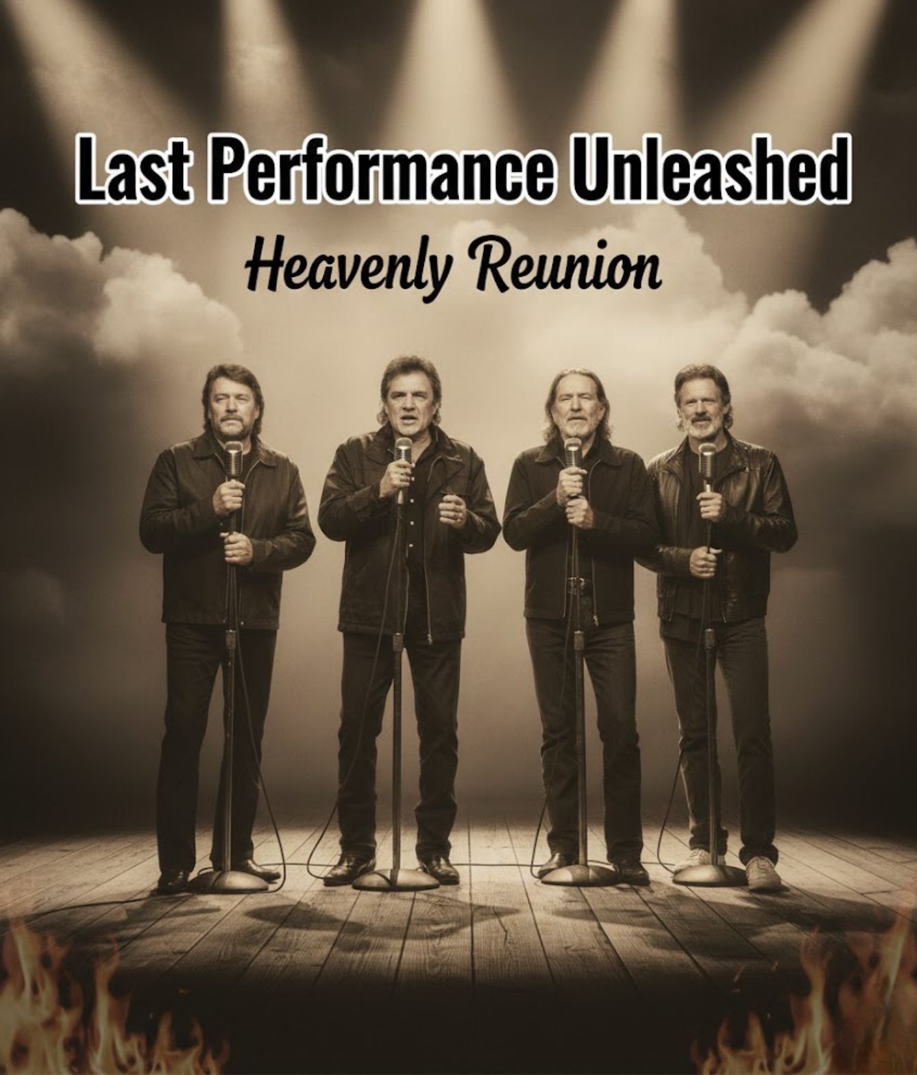 As the chorus rises, the audience’s reaction breaks through the tape — gasps, sobs, even a shouted prayer. It feels as though time buckles, bending to allow one more outlaw oath, one more shared truth, one more roar against the closing dark. For a moment too brief to measure, it is as if death itself steps aside, bowing in respect to four spirits who built an empire on grit, grace, and stubborn, glorious defiance.