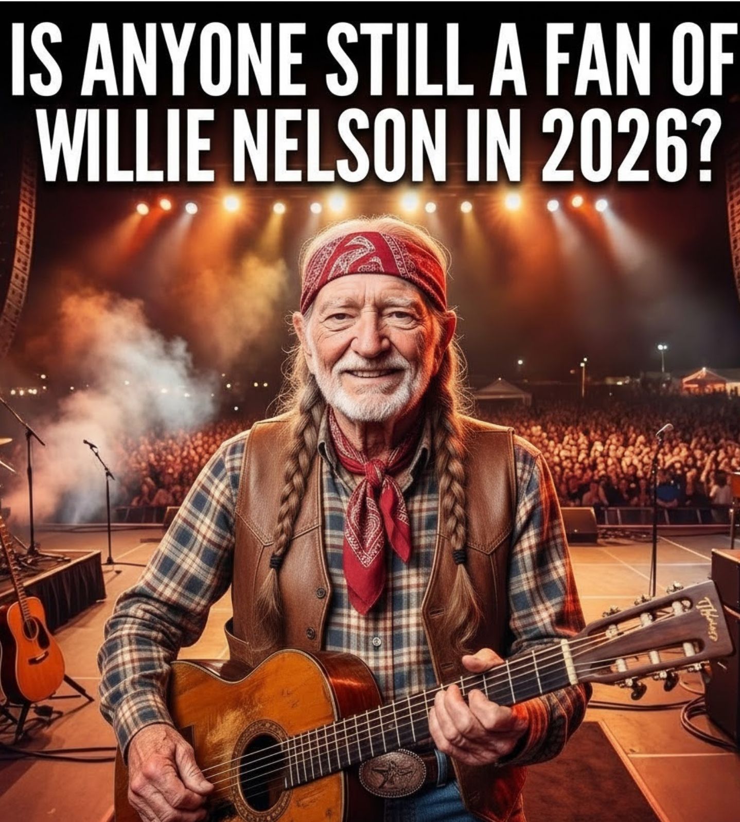 On a still summer evening, Willie Nelson stepped onto the stage the same way he always has — unhurried, familiar, unmistakably himself. There was no announcement crafted to heighten the moment. No sense of occasion pushed forward by spectacle. He walked into the light as though time had simply been waiting for him to arrive.