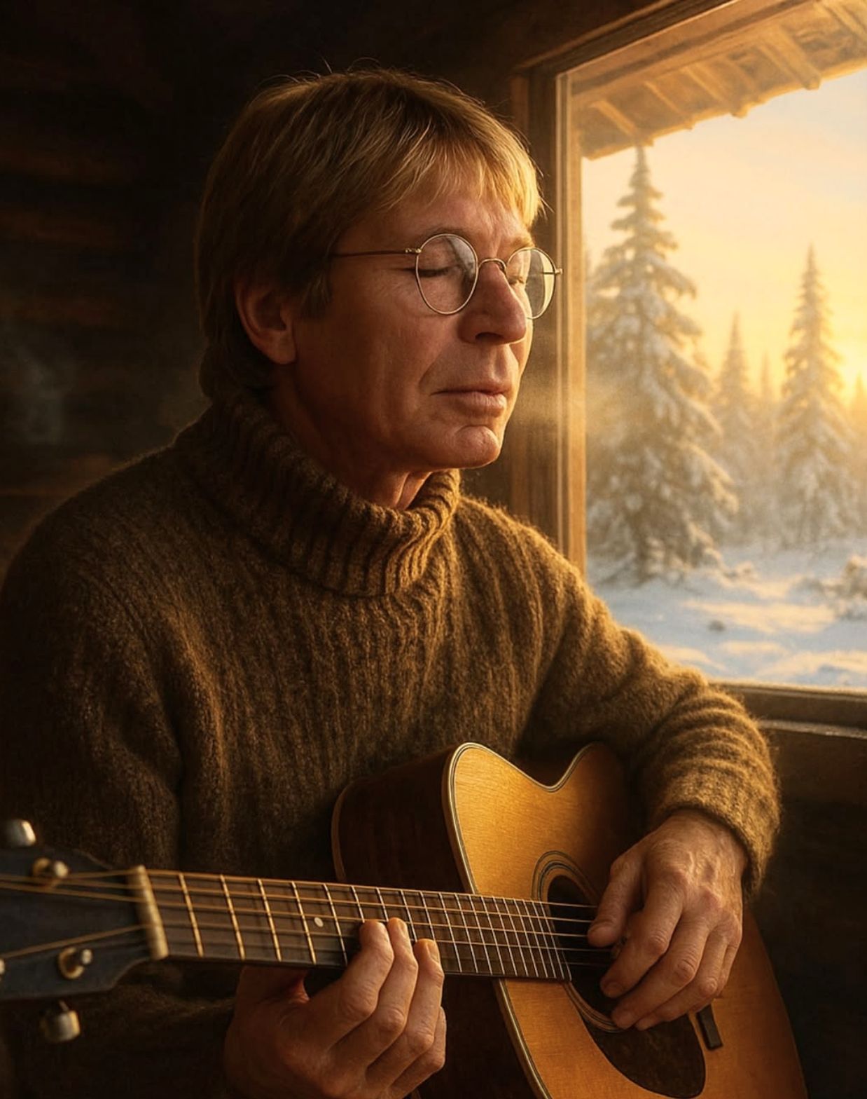 They say some songs are written — but others are born. In a quiet mountain cabin, blanketed in snow and solitude, John Denver once sat alone by the window, his guitar resting across his lap, the fire whispering against the cold. Outside, the Rocky Mountains stood in their silent majesty — ancient, unmoved, and yet somehow alive. That night, they didn’t just surround him; they seemed to breathe with him.