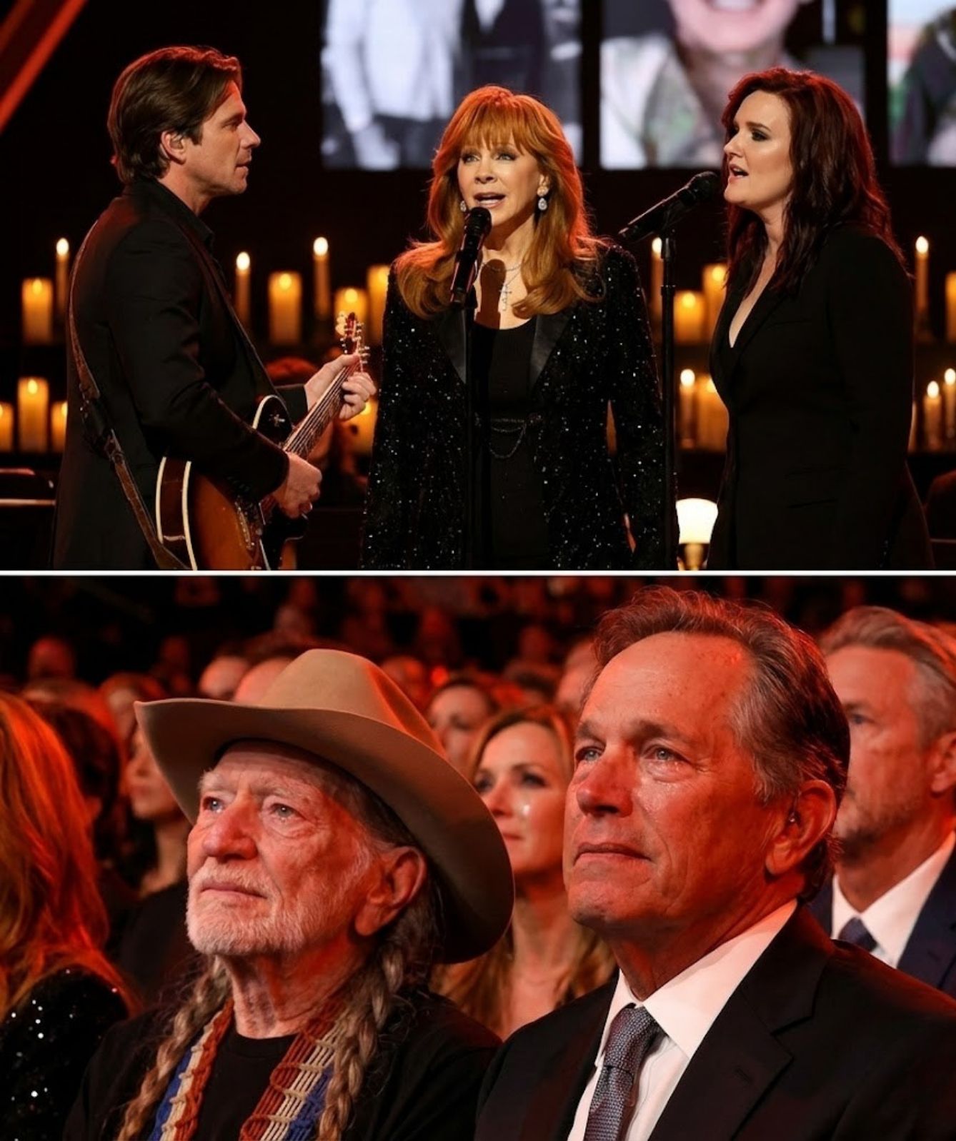 Reba’s voice entered first — not loud, not commanding, but open. Her notes did not push forward; they wrapped around the room, gentle as a warm evening wind. Each phrase felt like a hand placed on a shoulder, a reminder that grief does not need spectacle to be felt.