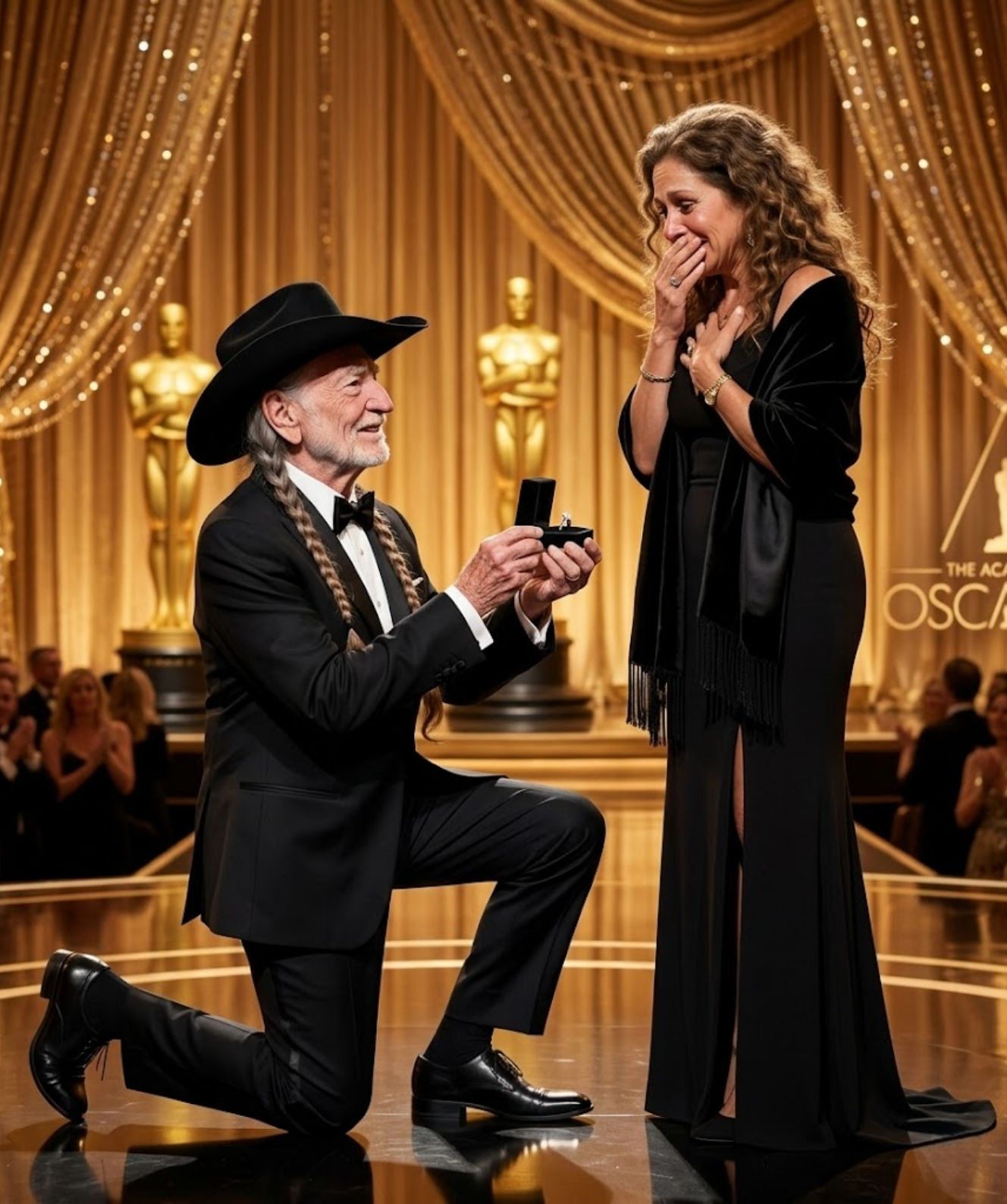 For a split second, the room seemed unsure of what it was witnessing. The cameras panned, the crowd leaned forward, and a quiet ripple of recognition moved across the audience. There he was—a living legend, walking slowly but steadily into the spotlight, carrying with him not just his iconic guitar Trigger, but decades of music, memory, and meaning.