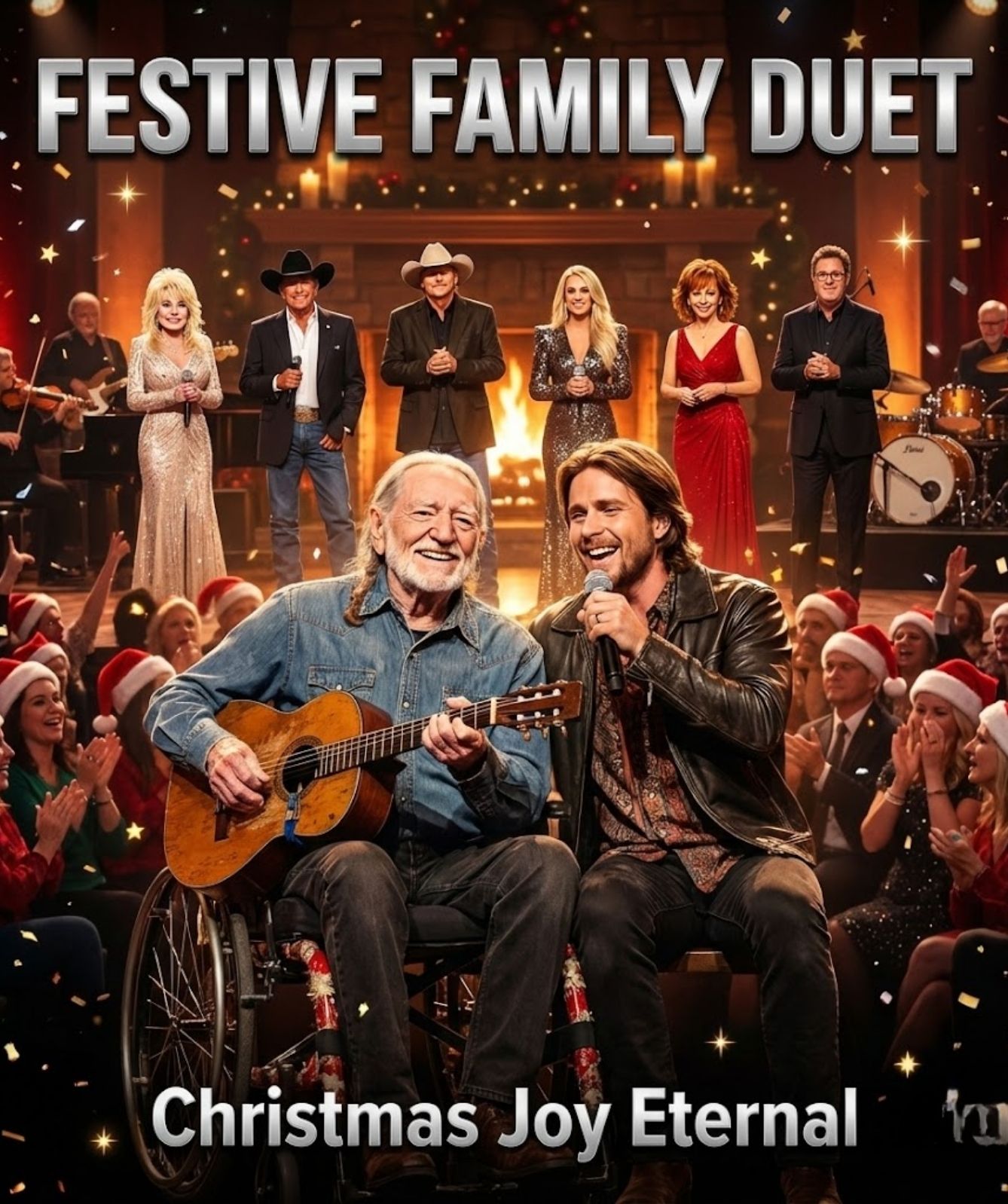 Willie sang with a gentleness that felt like an open hand. His phrasing wrapped around the melody the way Christmas wraps around memory — familiar, comforting, and deeply personal. Lukas didn’t imitate; he continued. You could hear it instantly: a father’s soul moving through a son’s voice, not borrowed, not forced, but freely given and gratefully received.