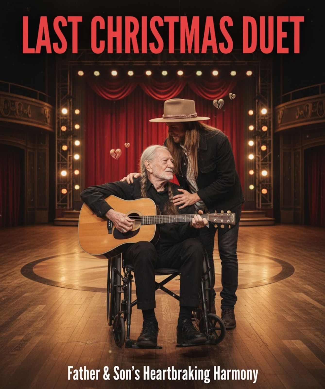 There are moments in music when the room changes before a single note is sung. On Christmas Eve, 2025, the Grand Ole Opry felt that shift — a hush settling over the crowd like fresh snow, the kind that softens every sound and sharpens every feeling. Surrounded by country legends and bathed in warm winter light, Willie Nelson stepped into the circle one last time. Not alone. Not for applause. But with his son.